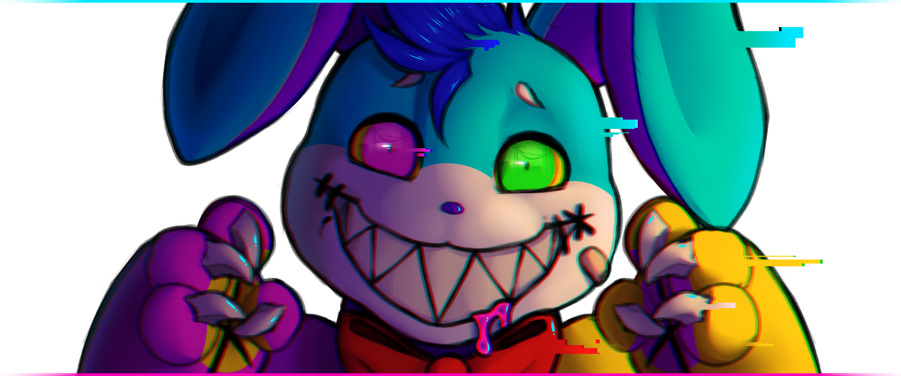 I'm 23, and from England, UK. I'm a digital artist and cosplayer with a passion for music, and I'm also a theme park / fairground enthusiast! My fursona is Veze, a monster rabbit, and my fursuit is made by BeautyOfTheBass Creations.My mascot, as seen above, is HysteriA. Don't mind him - he's friendlier than he looks!I've been drawing since I could hold a pencil. My roots began with drawing Sonic characters before discovering the world of flash games, which is where I moved over to furry! I've been in the fandom for roughly 12 years now.